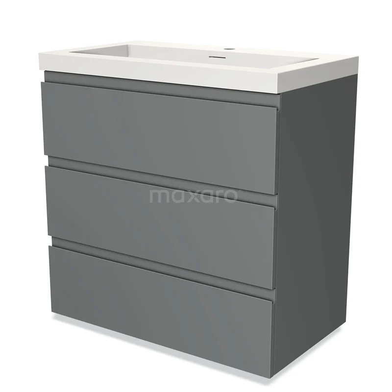 Modulo Bathroom furniture with sink | 80 cm Mid grey Handle-less front Solid surface 3 drawers