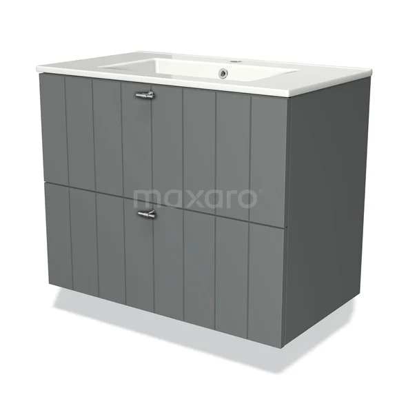 Modulo Bathroom furniture with sink | 80 cm Mid grey Slat front Ceramic 2 Stacked drawers