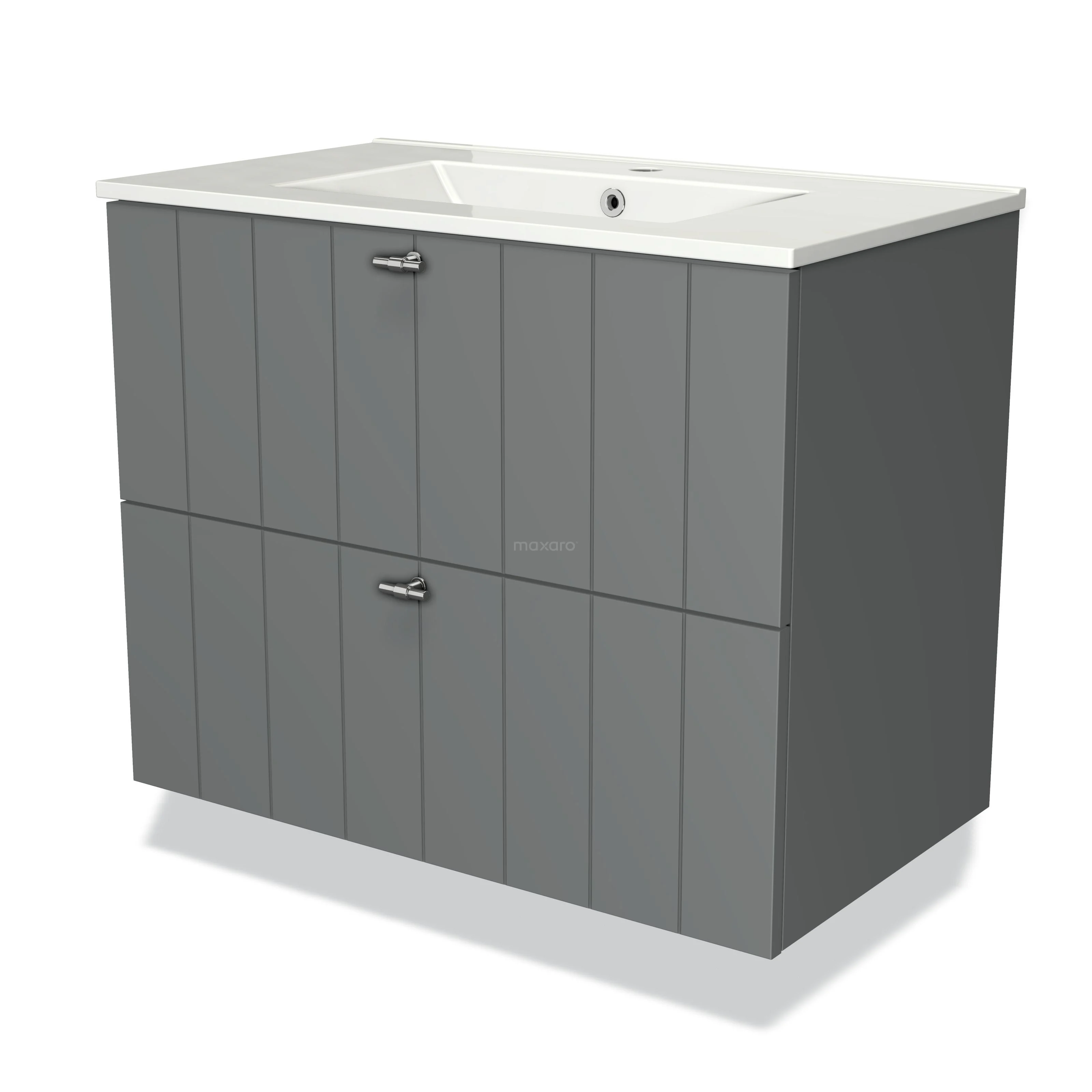 Modulo Bathroom furniture with sink | 80 cm Mid grey Slat front Ceramic 2 Stacked drawers