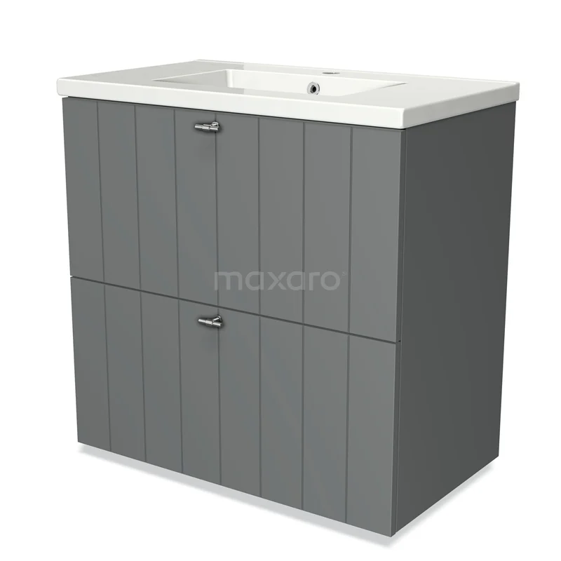 Modulo Bathroom furniture with sink | 80 cm Mid grey Slat front Ceramic 2 stacked drawers under each other