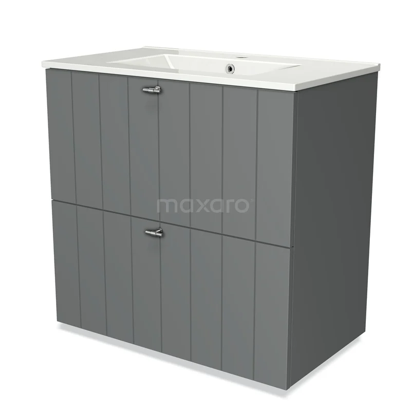 Modulo Bathroom furniture with sink | 80 cm Mid grey Slat front Ceramic 2 stacked drawers under each other