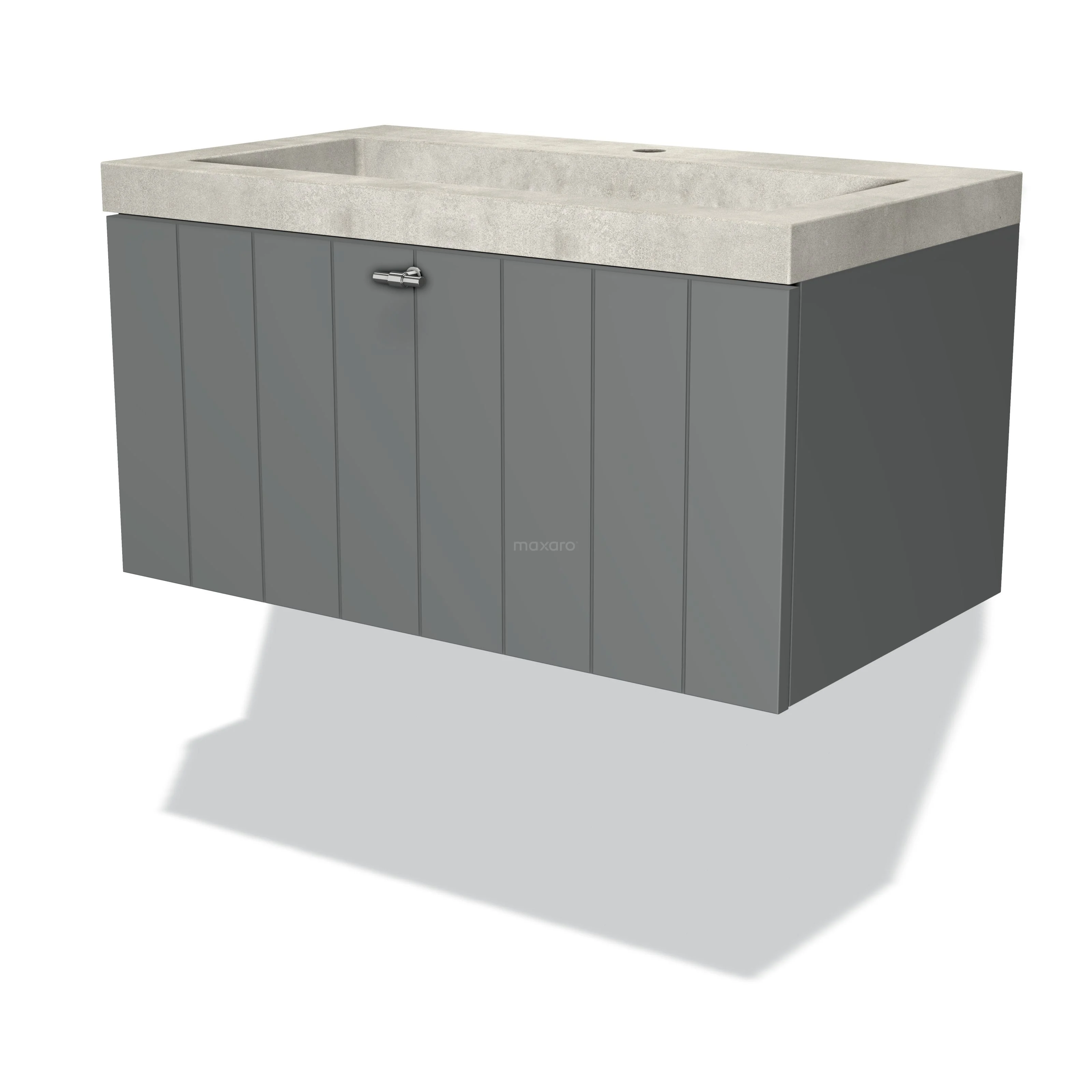Modulo Bathroom furniture with sink | 80 cm Mid grey Slat front Concrete 1 drawer