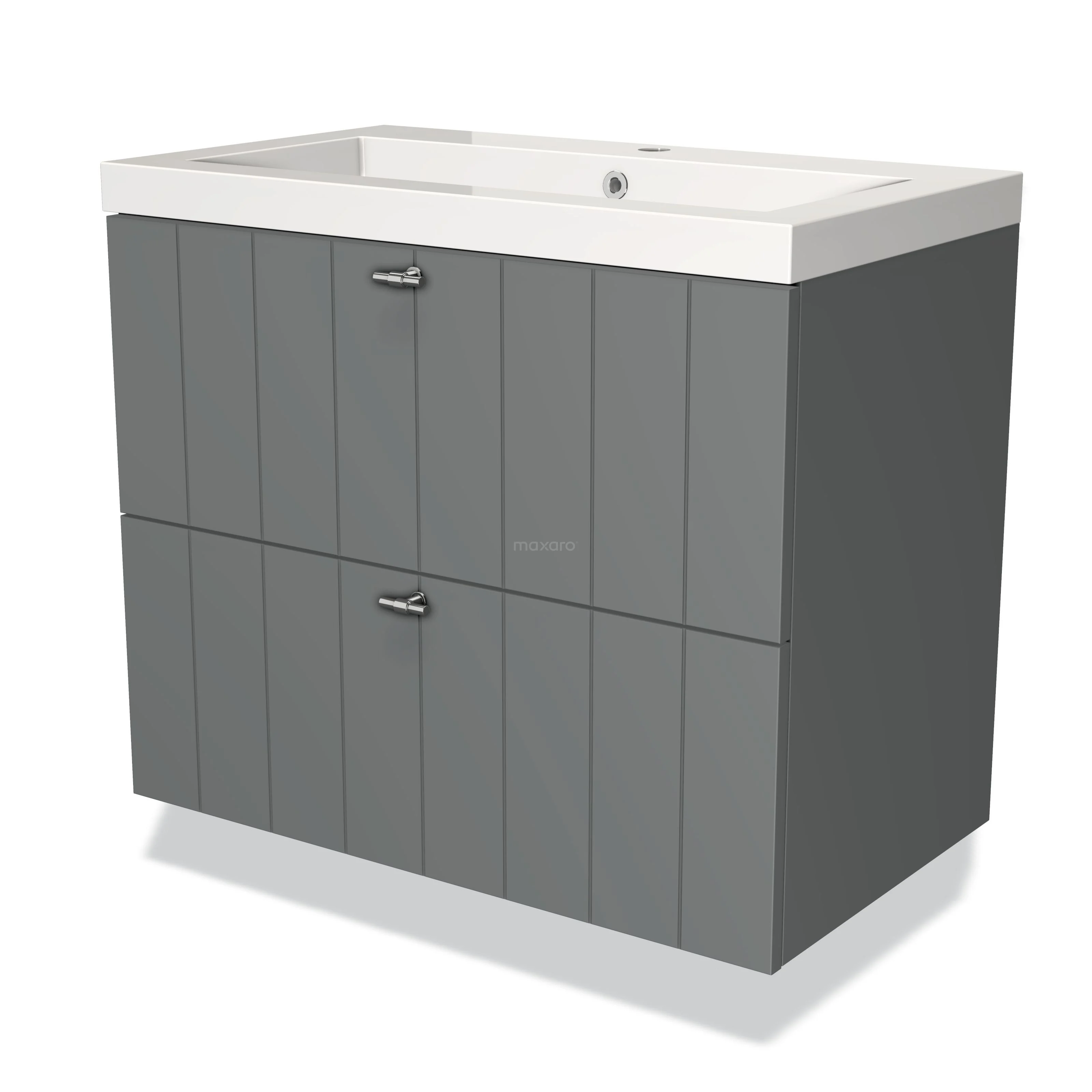 Modulo Bathroom furniture with sink | 80 cm Mid grey Slat front Mineral marble 2 Stacked drawers