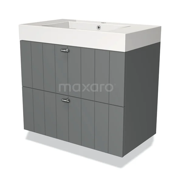 Modulo Bathroom furniture with sink | 80 cm Mid grey Slat front Mineral marble 2 Stacked drawers