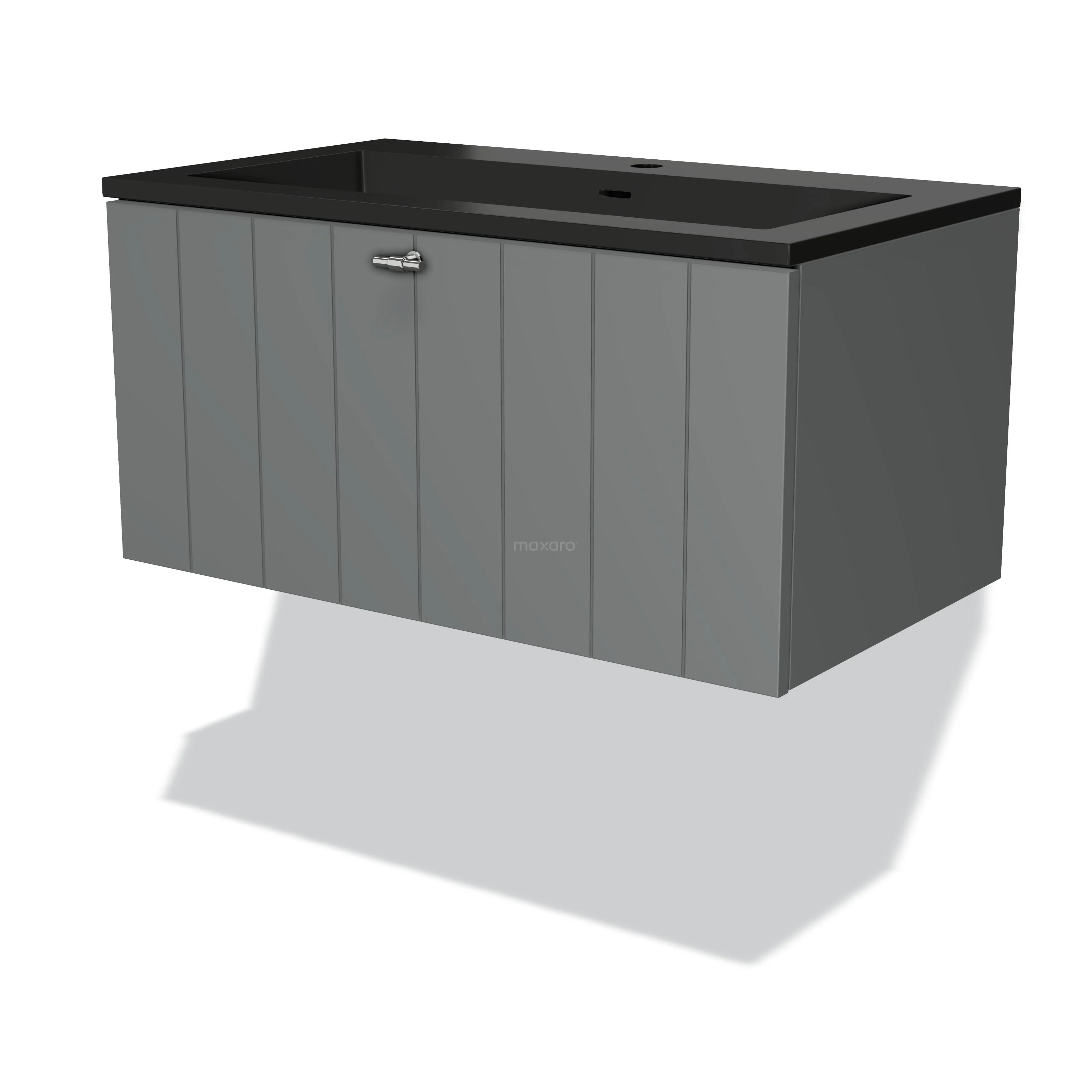 Modulo Bathroom furniture with sink | 80 cm Mid grey Slat front Quartz 1 drawer