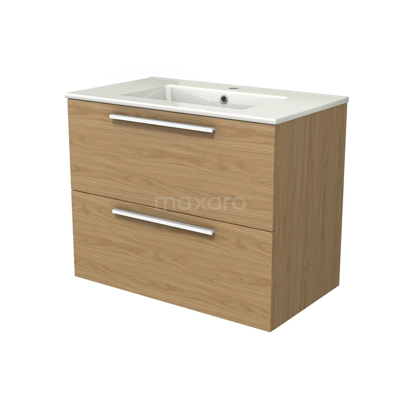 Modulo Bathroom furniture with sink | 80 cm Natural veneer Flat front Ceramic 2 Stacked drawers