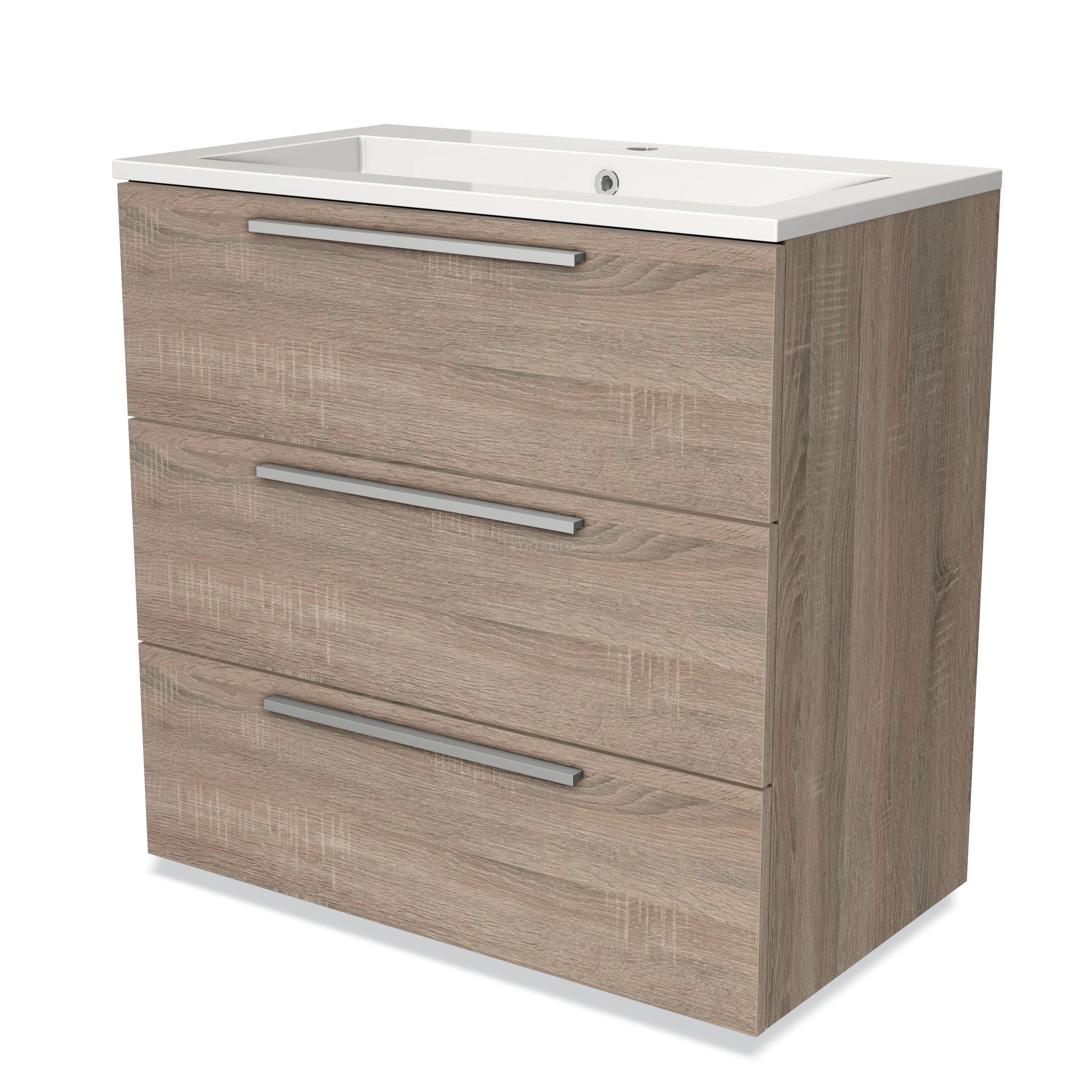 Modulo Bathroom furniture with sink | 80 cm Oak Flat front Mineral marble 3 drawers