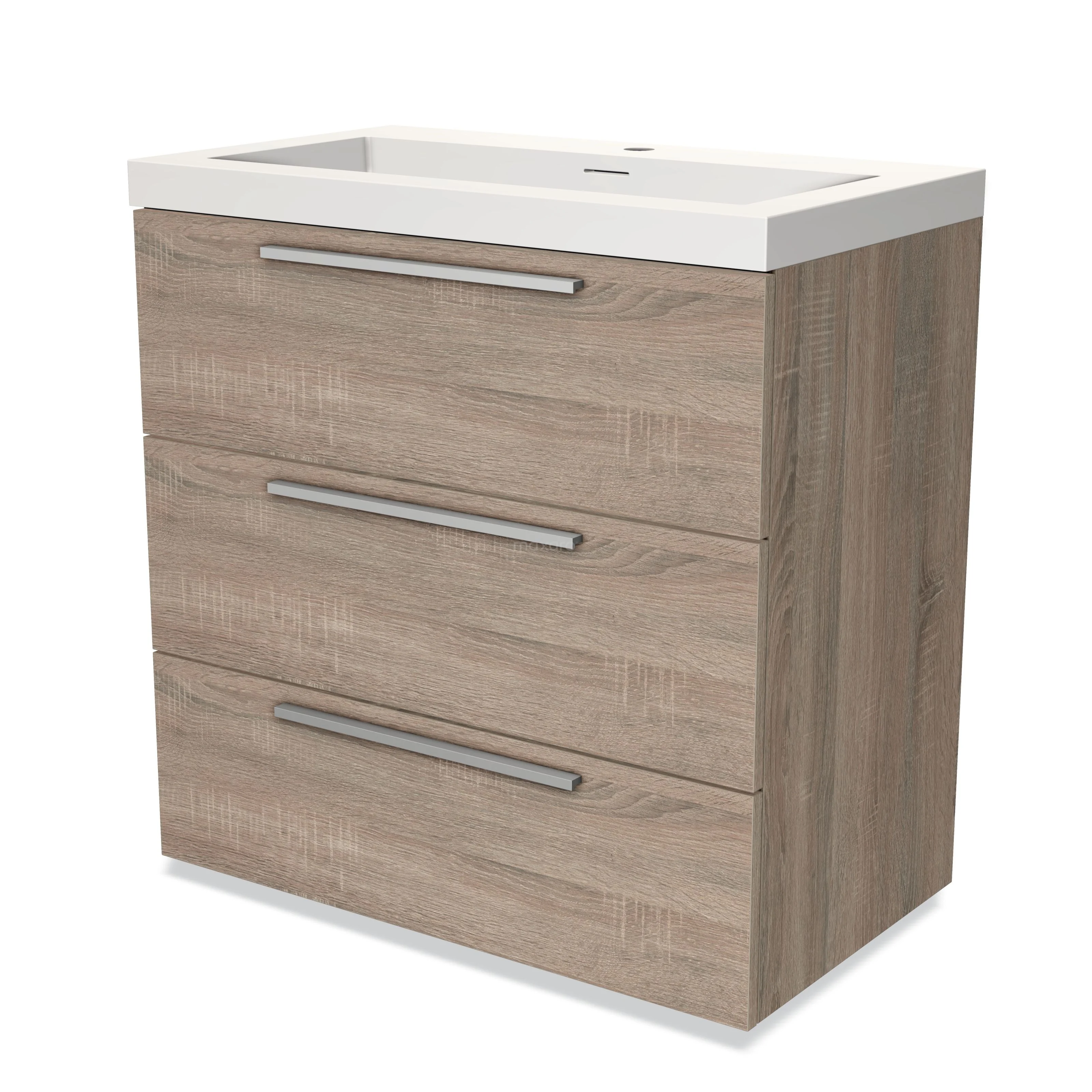 Modulo Bathroom furniture with sink | 80 cm Oak Flat front Solid surface 3 drawers