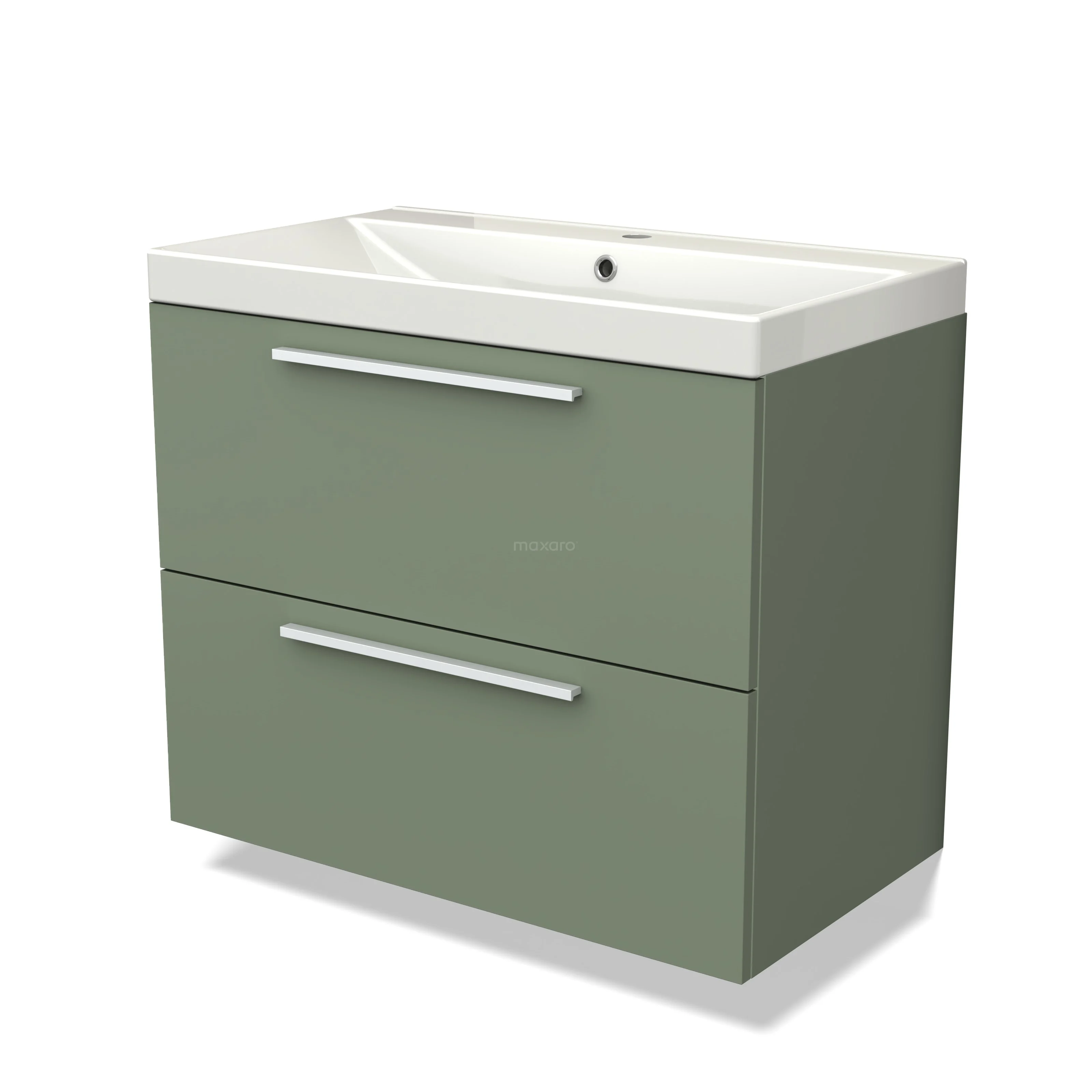 Modulo Bathroom furniture with sink | 80 cm Sage green Flat front Ceramic 2 Stacked drawers