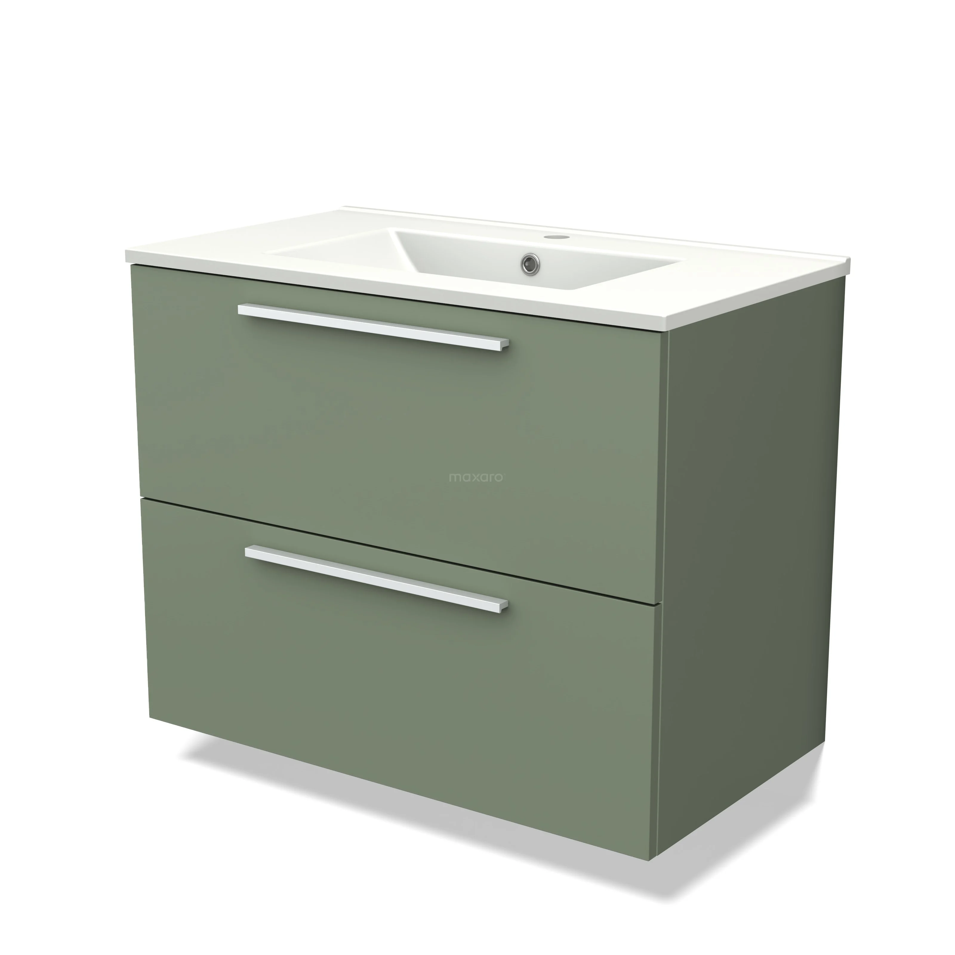 Modulo Bathroom furniture with sink | 80 cm Sage green Flat front Ceramic 2 Stacked drawers