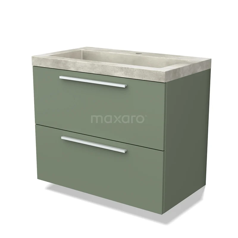 Modulo Bathroom furniture with sink | 80 cm Sage green Flat front Concrete 2 Stacked drawers