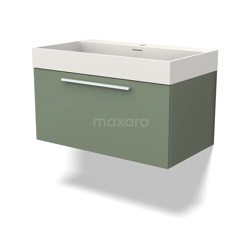 Modulo Bathroom furniture with sink | 80 cm Sage green Flat front Solid surface 1 drawer