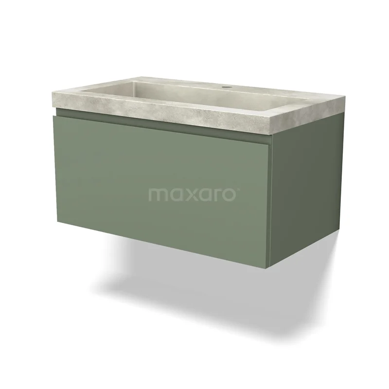 Modulo Bathroom furniture with sink | 80 cm Sage green Handle-less front Concrete 1 drawer