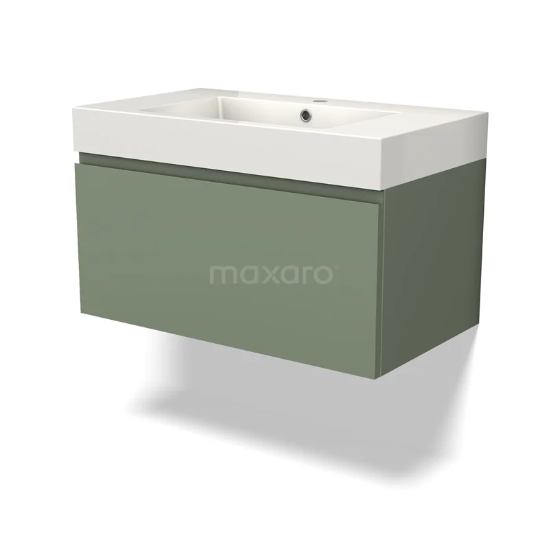 Modulo Bathroom furniture with sink | 80 cm Sage green Handle-less front Mineral marble 1 drawer