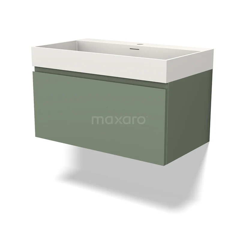 Modulo Bathroom furniture with sink | 80 cm Sage green Handle-less front Solid surface 1 drawer