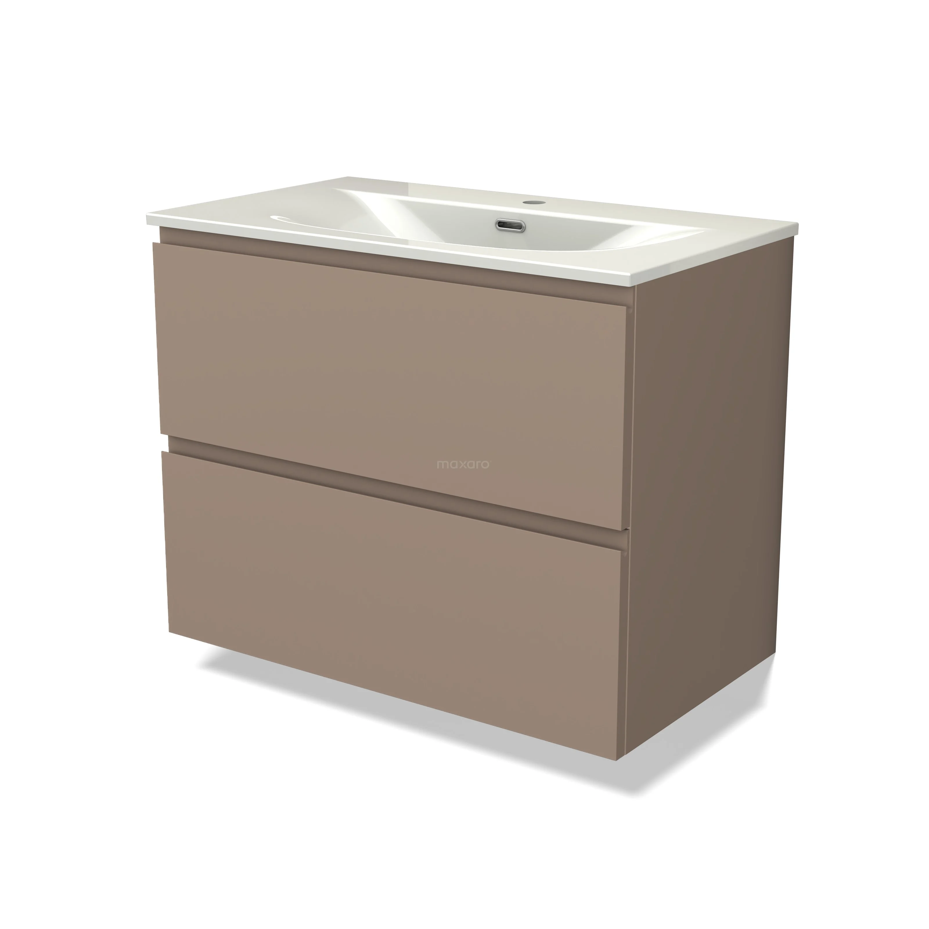 Modulo Bathroom furniture with sink | 80 cm Taupe Handle-less front Ceramic 2 Stacked drawers