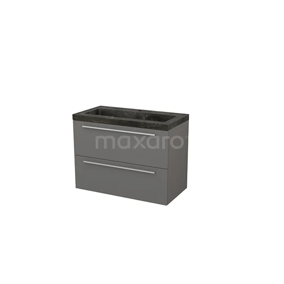 Modulo+ Bathroom furniture with sink | 90 cm Basalt Flat front Natural stone 2 Stacked drawers