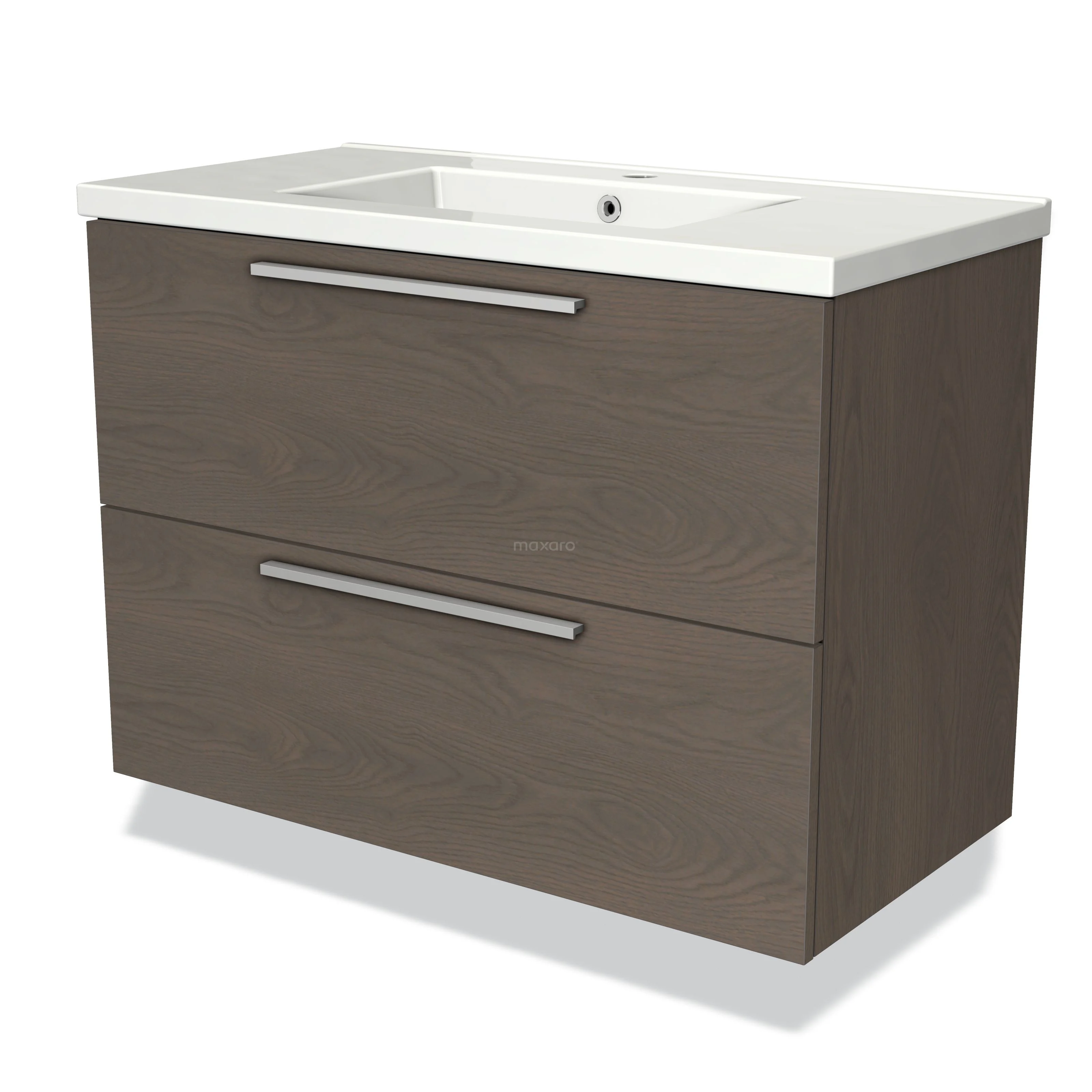 Modulo Bathroom furniture with sink | 90 cm Dark brown oak Flat front Ceramic 2 Stacked drawers