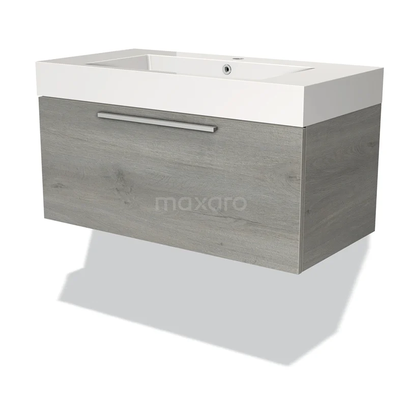 Modulo Bathroom furniture with sink | 90 cm Grey oak Flat front Mineral marble 1 drawer