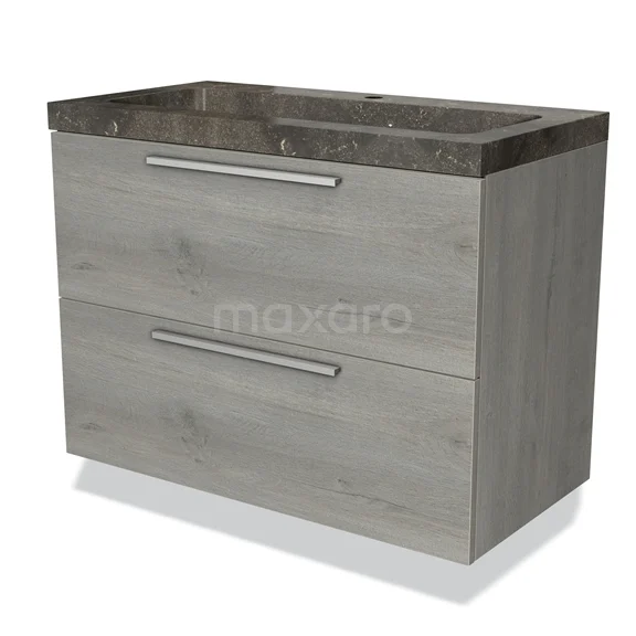 Modulo Bathroom furniture with sink | 90 cm Grey oak Flat front Natural stone 2 Stacked drawers