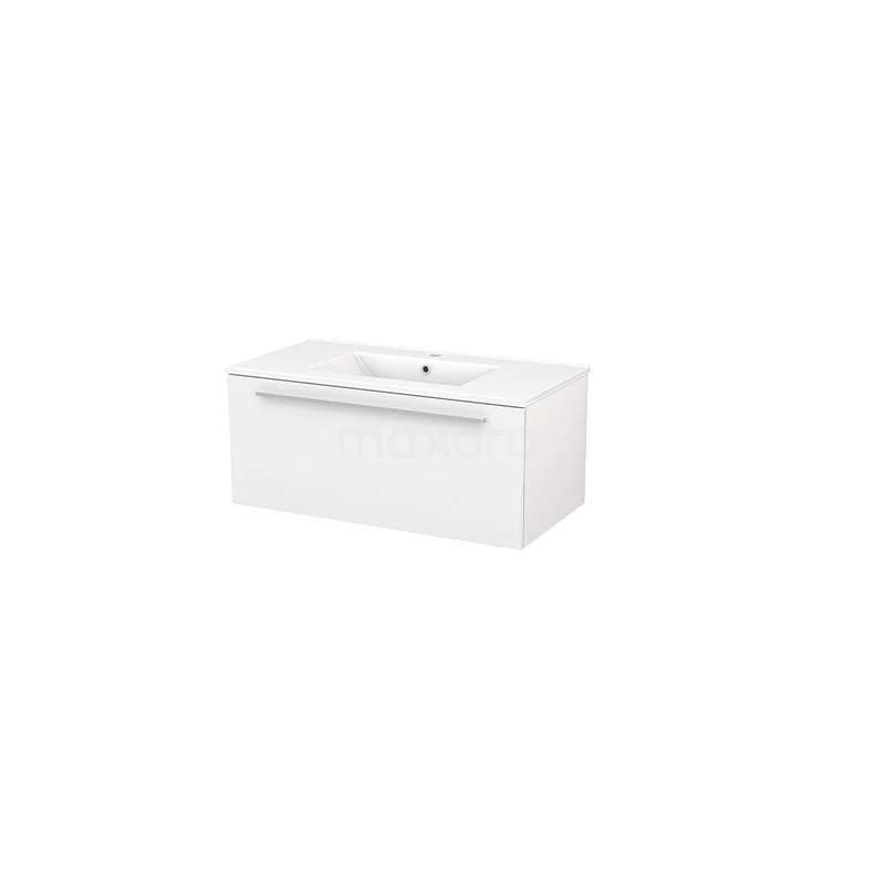 Modulo+ Bathroom furniture with sink | 90 cm High-gloss white Flat front Ceramic 1 drawer