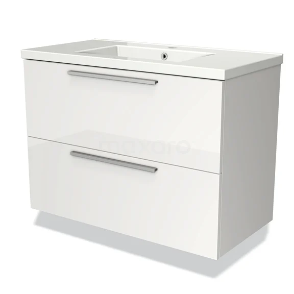 Modulo Bathroom furniture with sink | 90 cm High-gloss white Flat front Ceramic 2 Stacked drawers