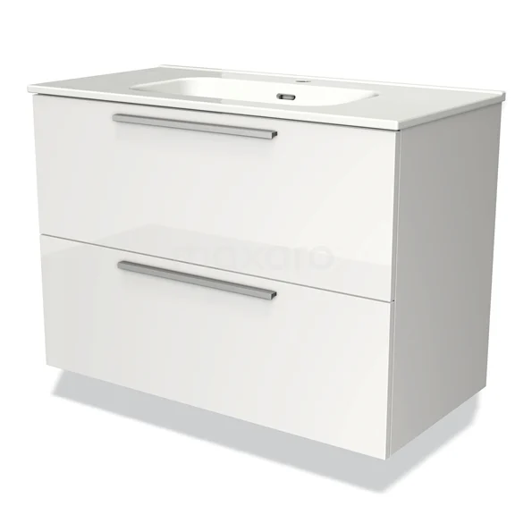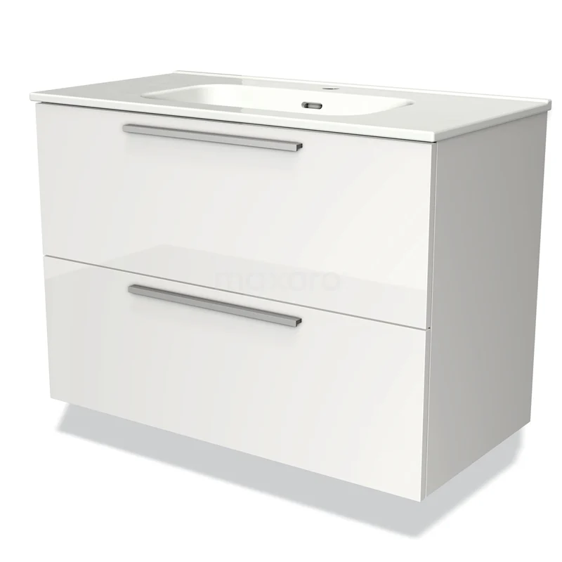 Modulo Bathroom furniture with sink | 90 cm High-gloss white Flat front Ceramic 2 Stacked drawers