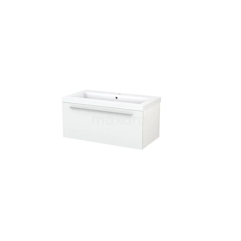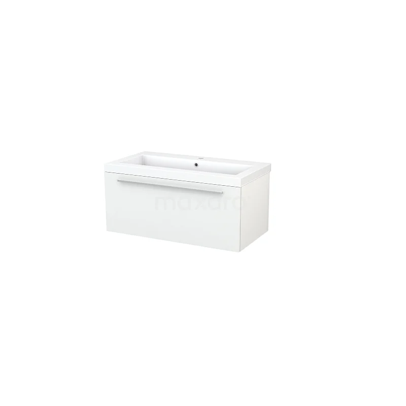 Modulo+ Bathroom furniture with sink | 90 cm High-gloss white Flat front Mineral marble 1 drawer