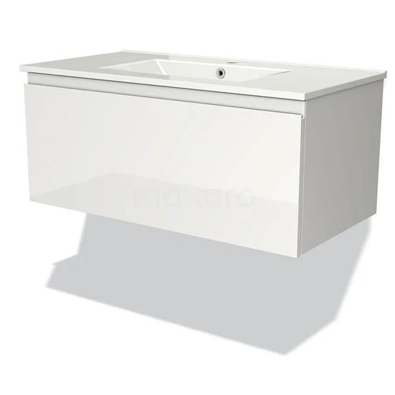 Modulo Bathroom furniture with sink | 90 cm High-gloss white Handle-less front Ceramic 1 drawer