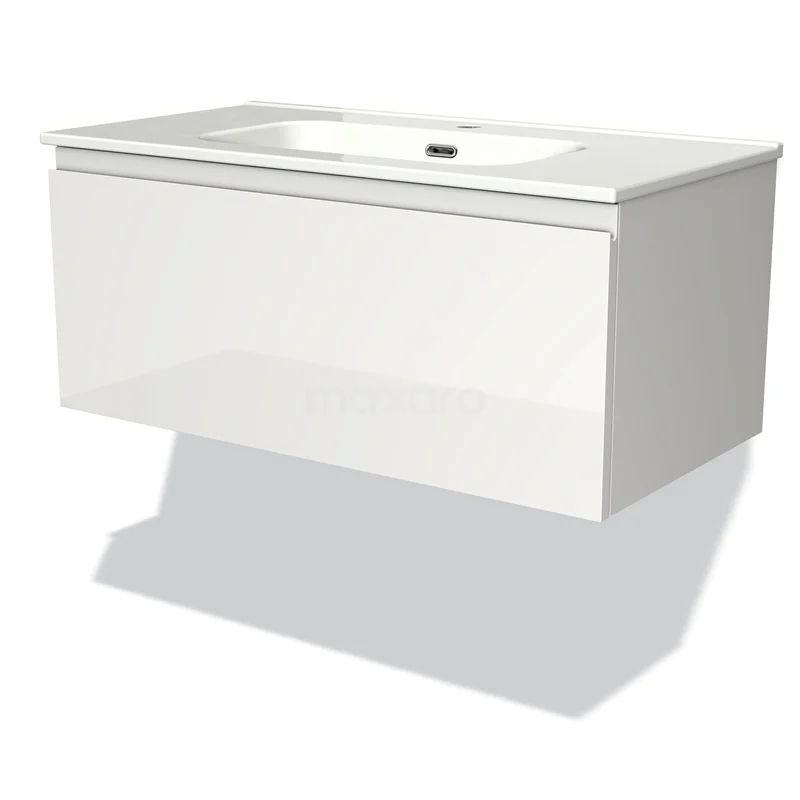 Modulo Bathroom furniture with sink | 90 cm High-gloss white Handle-less front Ceramic 1 drawer