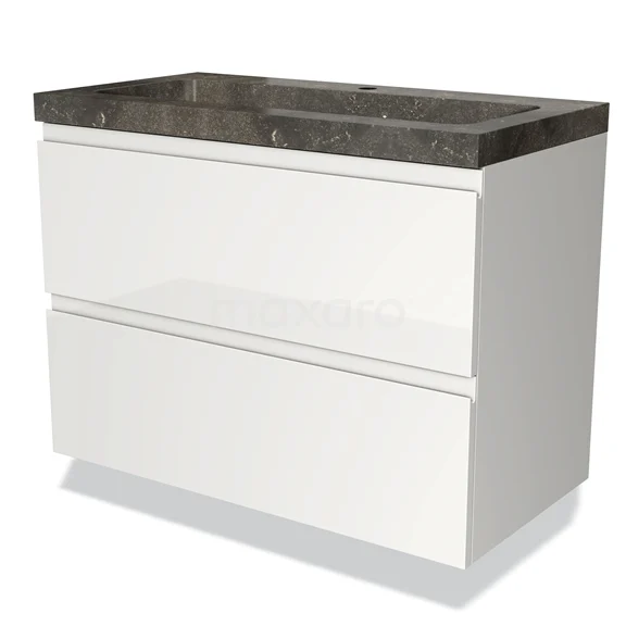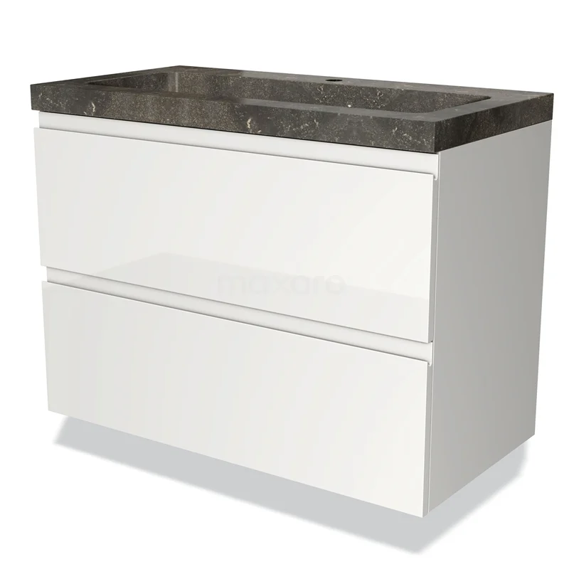 Modulo Bathroom furniture with sink | 90 cm High-gloss white Handle-less front Natural stone 2 Stacked drawers