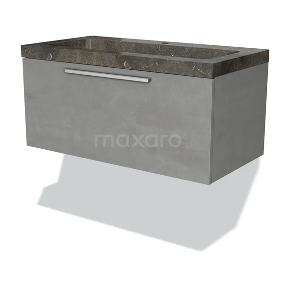 Modulo Bathroom furniture with sink | 90 cm Light grey concrete Flat front Natural stone 1 drawer