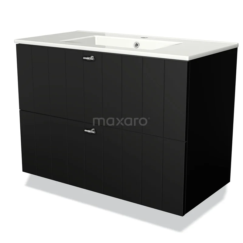 Modulo Bathroom furniture with sink | 90 cm Matte black Slat front Ceramic 2 Stacked drawers