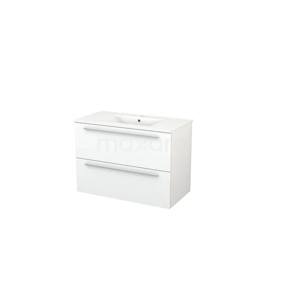 Modulo+ Bathroom furniture with sink | 90 cm Matte white Flat front Ceramic 2 Stacked drawers