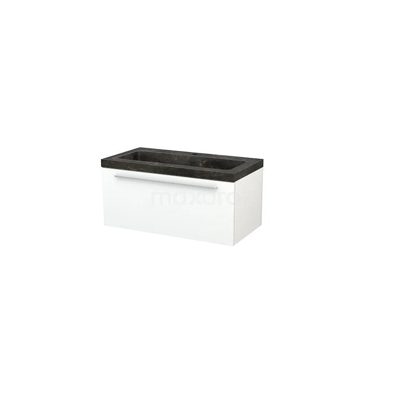 Modulo+ Bathroom furniture with sink | 90 cm Matte white Flat front Natural stone 1 drawer