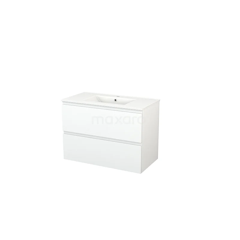 Modulo+ Bathroom furniture with sink | 90 cm Matte white Handle-less front Ceramic 2 Stacked drawers