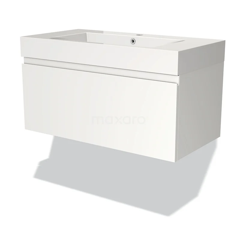 Modulo Bathroom furniture with sink | 90 cm Matte white Handle-less front Mineral marble 1 drawer