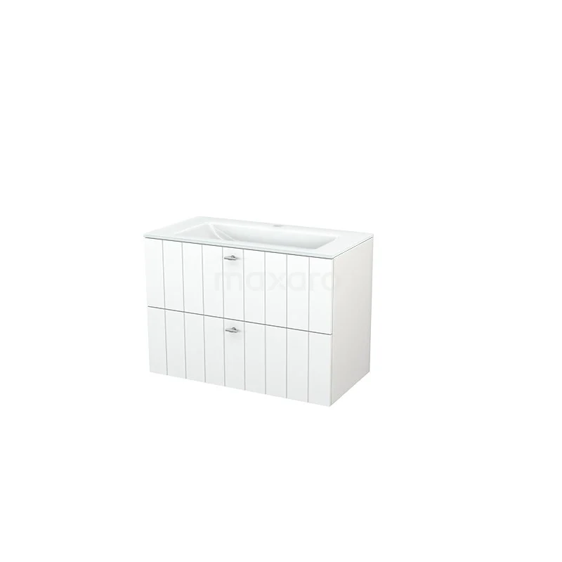 Modulo+ Bathroom furniture with sink | 90 cm Matte white Slat front Glass 2 Stacked drawers