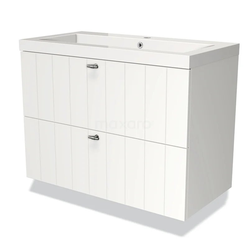 Stylish design The stylish design makes this bathroom unit the eye-catcher of your bathroom. The base cabinet features a slatted front and has a matte white finish. This colour has a modern appeal and gives the unit a fresh look and feel. In addition, the slatted front adds a rural touch. You need to add the handles yourself. These are available in various colours and shapes