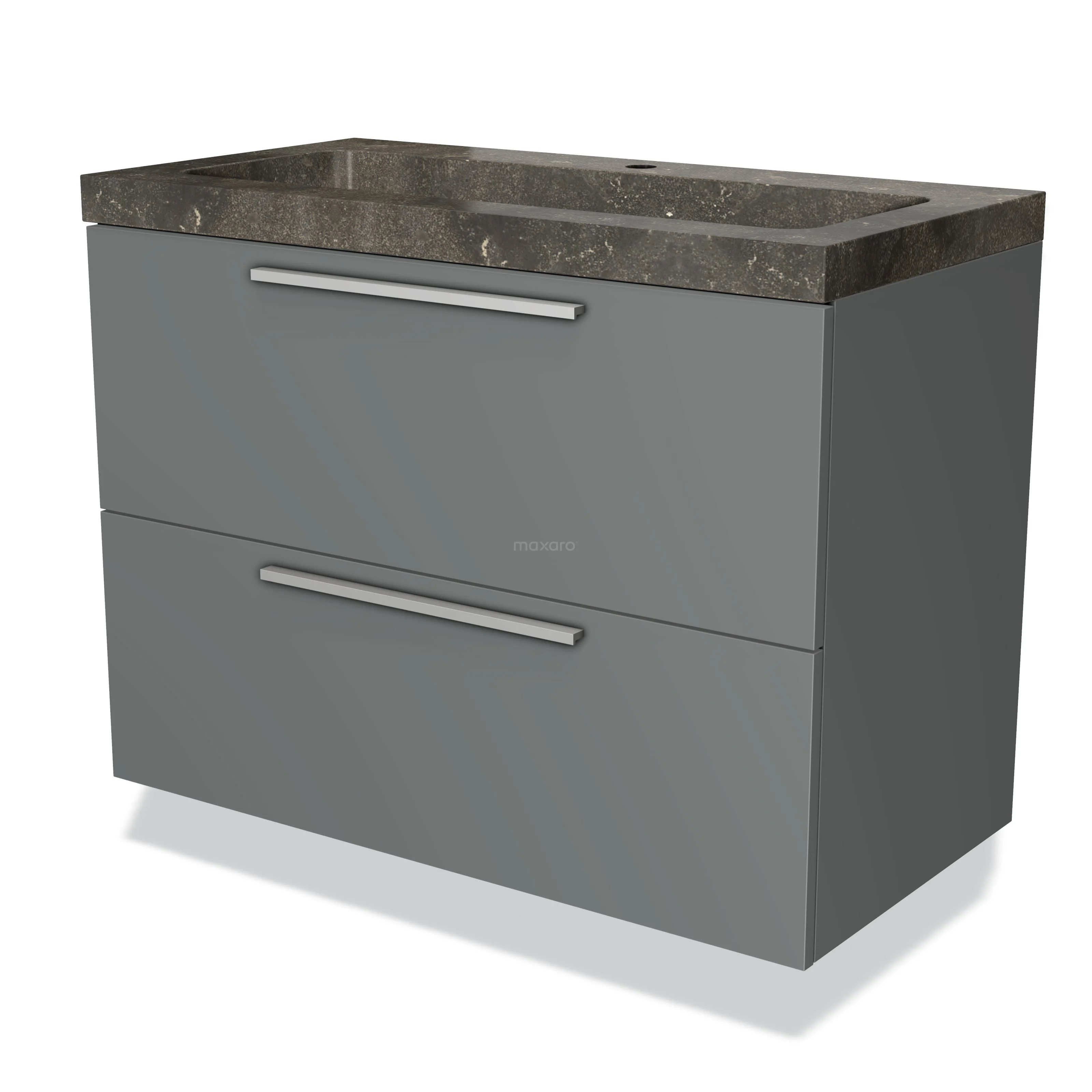 Modulo Bathroom furniture with sink | 90 cm Mid grey Flat front Natural stone 2 Stacked drawers