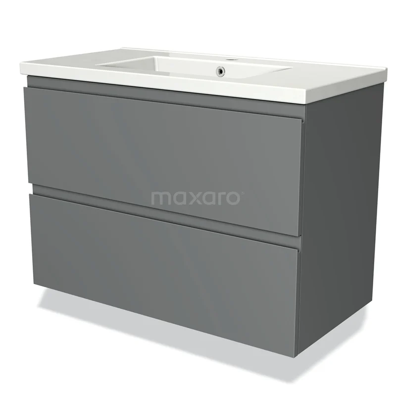 Modulo Bathroom furniture with sink | 90 cm Mid grey Handle-less front Ceramic 2 Stacked drawers
