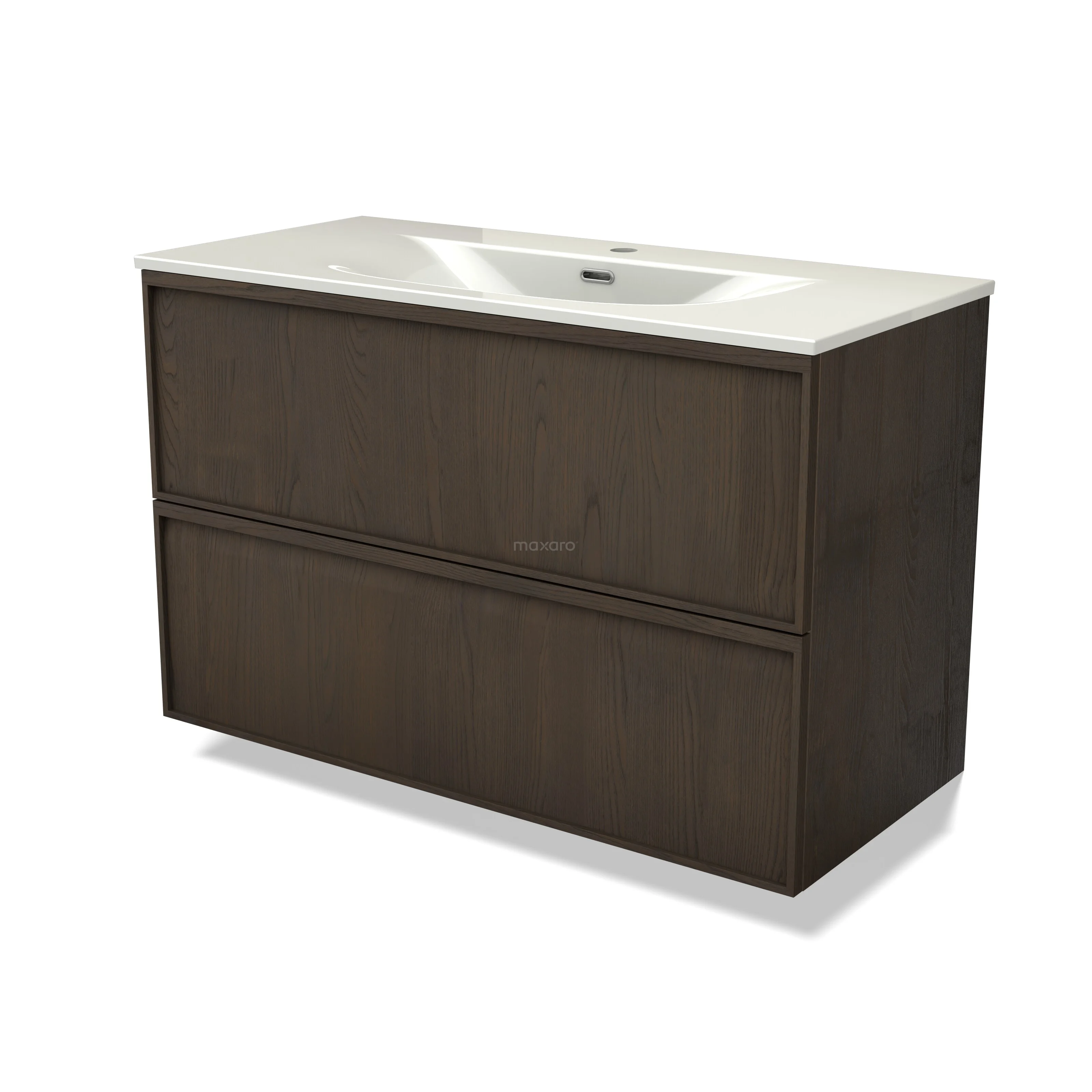 Modulo Plus Bathroom furniture with sink | 100 cm Espresso oak Ledge front Ceramic 2 Stacked drawers
