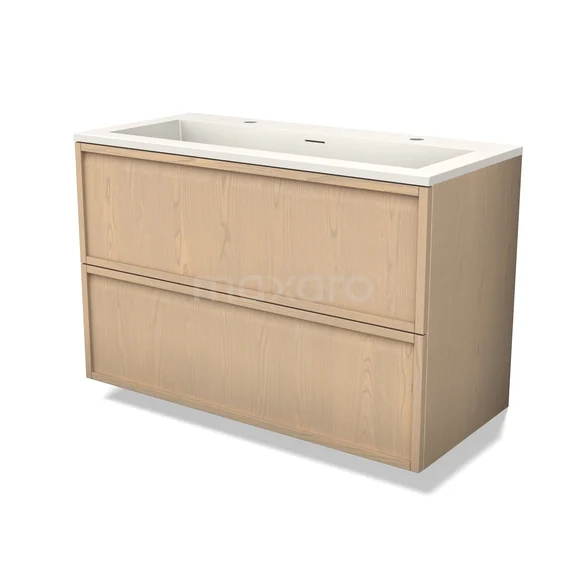 Modulo Plus Bathroom furniture with sink | 100 cm Natural oak Framework front Solid surface 2 Stacked drawers