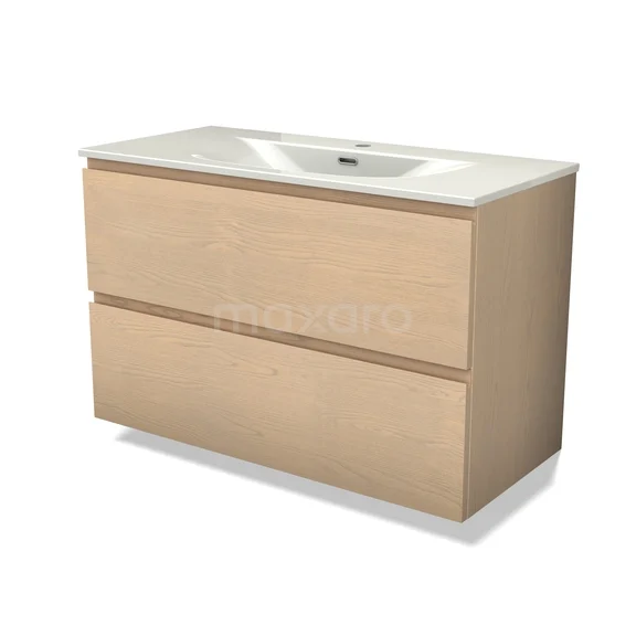 Modulo Plus Bathroom furniture with sink | 100 cm Natural oak Handle-less front Ceramic 2 Stacked drawers