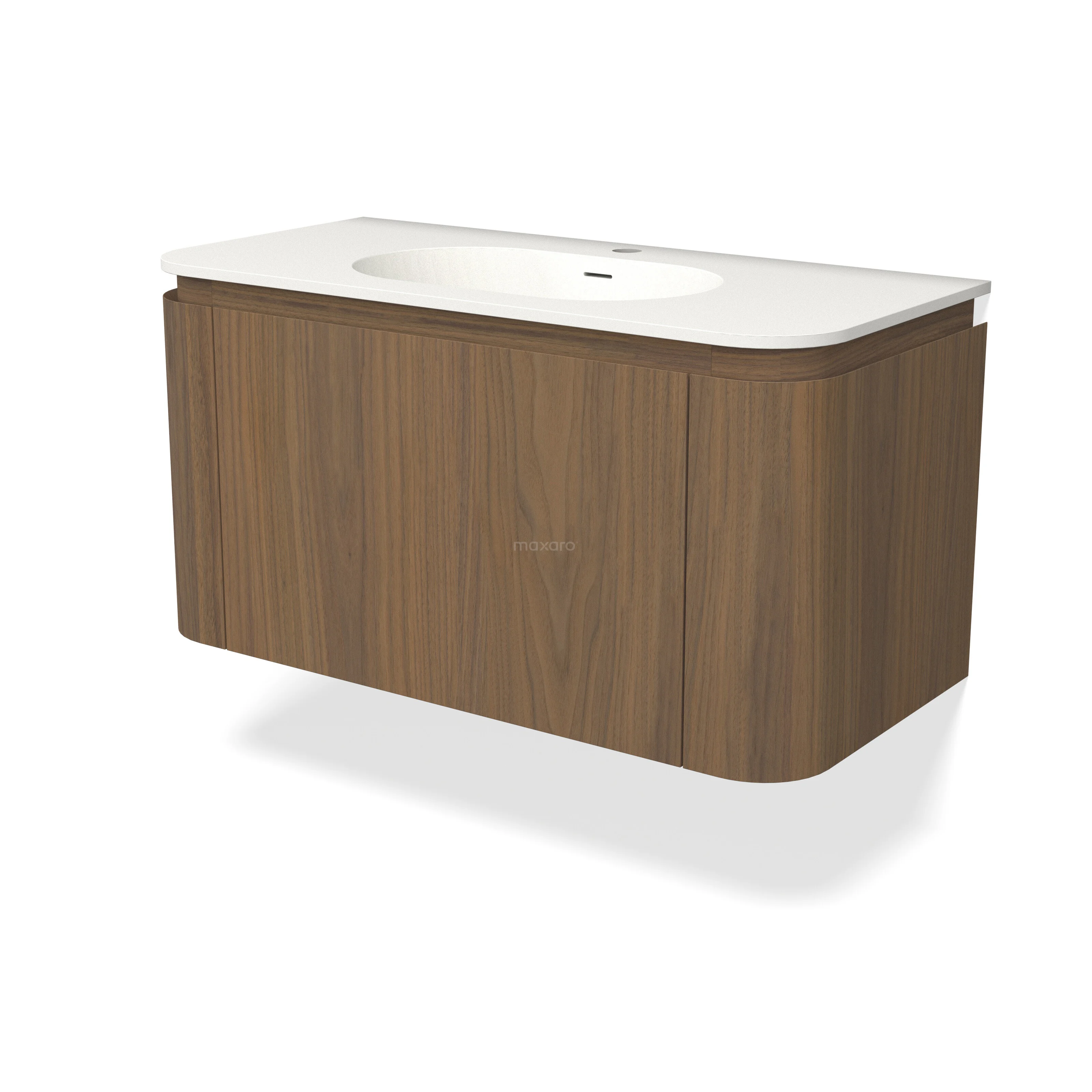 Modulo Plus Bathroom furniture with sink | 100 cm Walnut wood front Solid surface 1 rounded drawer