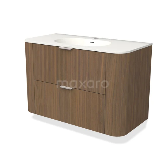 Modulo Plus Bathroom furniture with sink | 100 cm Walnut wood front Solid surface 2 Stacked rounded drawers