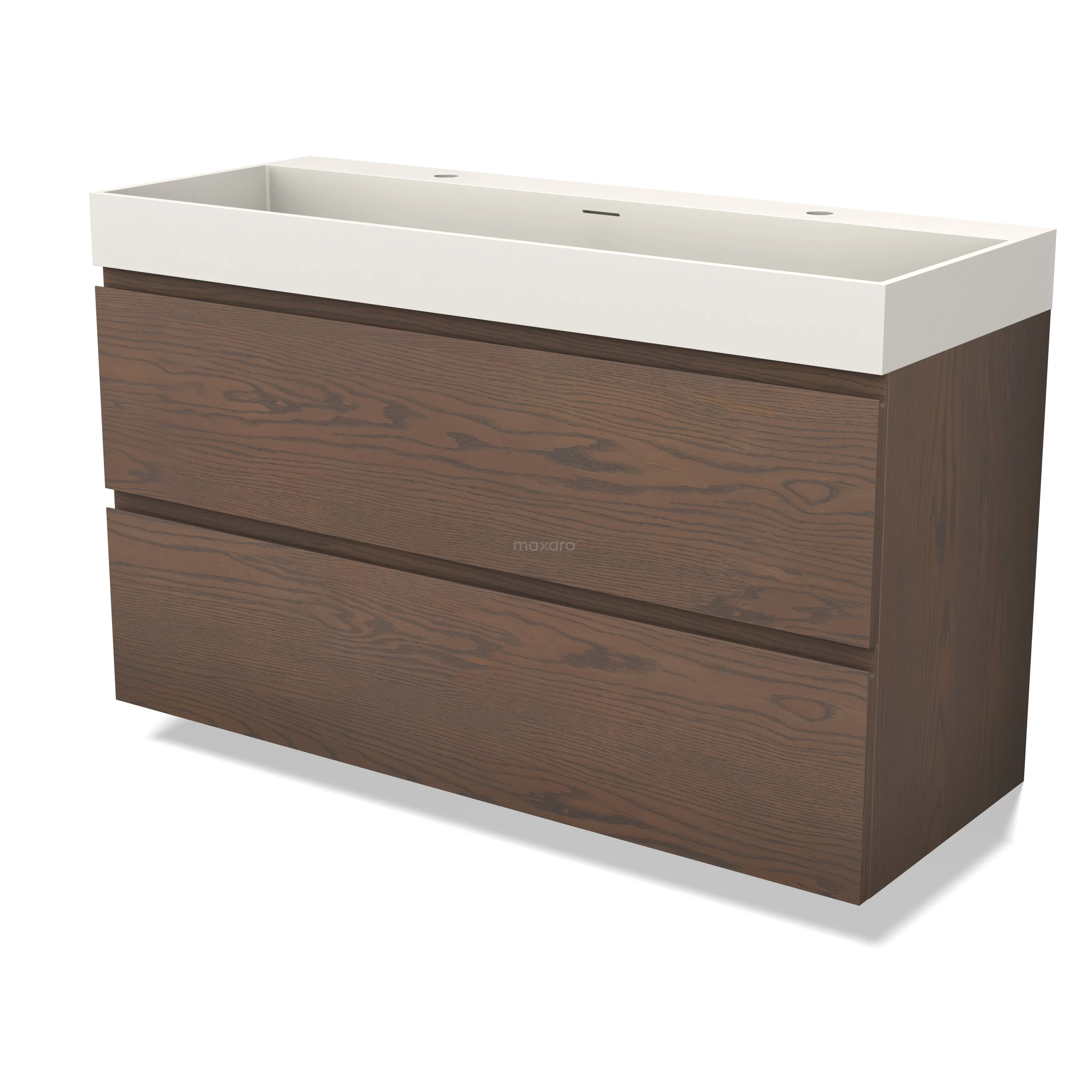 Modulo Plus Bathroom furniture with sink | 120 cm Cocoa oak Handle-less front Solid surface 2 Stacked drawers