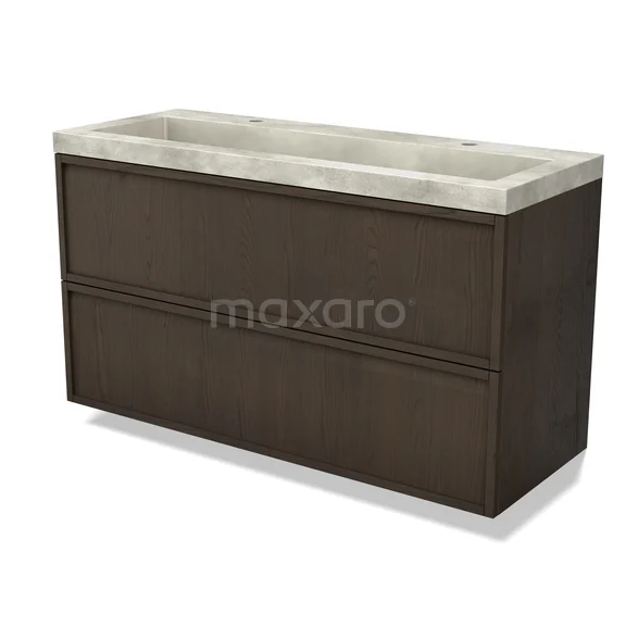 Modulo Plus Bathroom furniture with sink | 120 cm Espresso oak Framework front Concrete 2 Stacked drawers