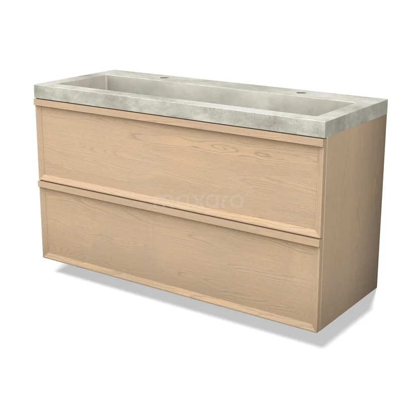 Modulo Plus Bathroom furniture with sink | 120 cm Natural oak Facet front Concrete 2 Stacked drawers