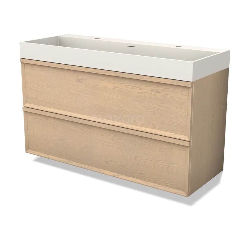 Modulo Plus Bathroom furniture with sink | 120 cm Natural oak Facet front Solid surface 2 Stacked drawers